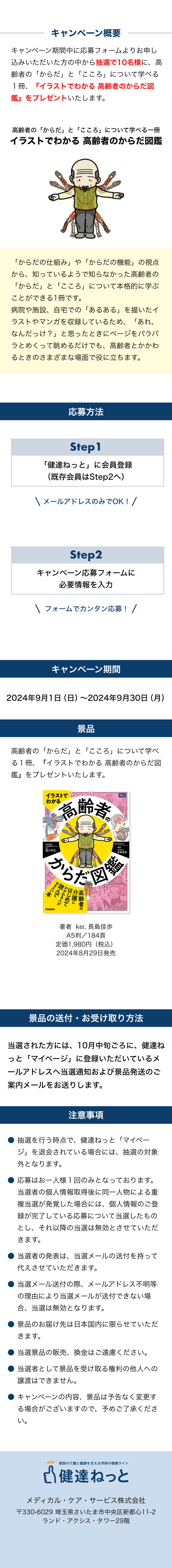 書籍プレゼントキャンペーン第3弾「イラストでわかる 高齢者のからだ図鑑」 書籍プレゼントキャンペーン第3弾「イラストでわかる 高齢者のからだ図鑑」