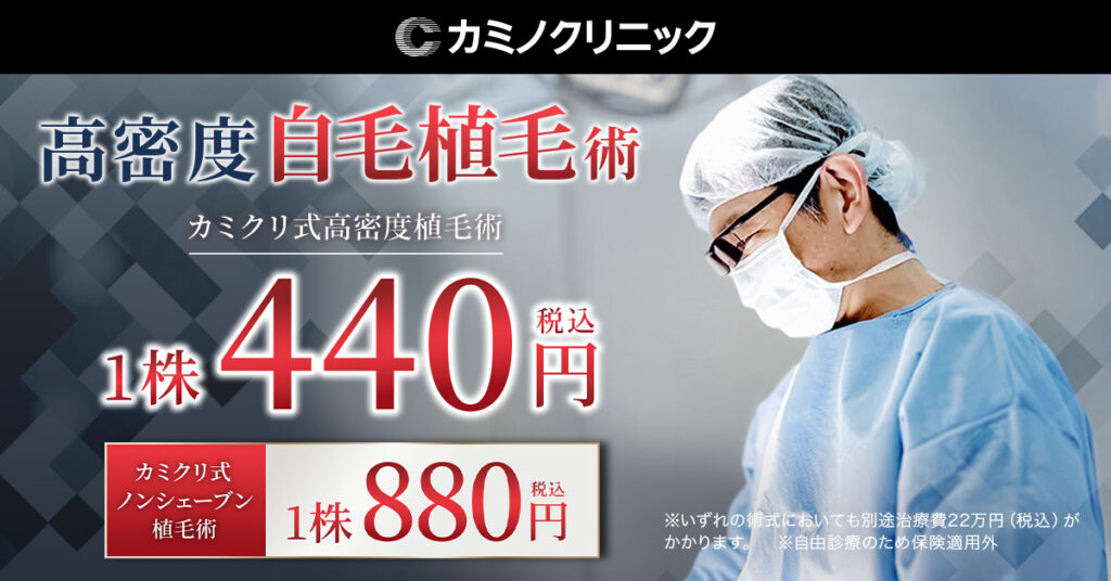 また、クリニック独自の「カミクリ式高密度自毛植毛術」により、スピーディーに自然な仕上がりを実現できます。