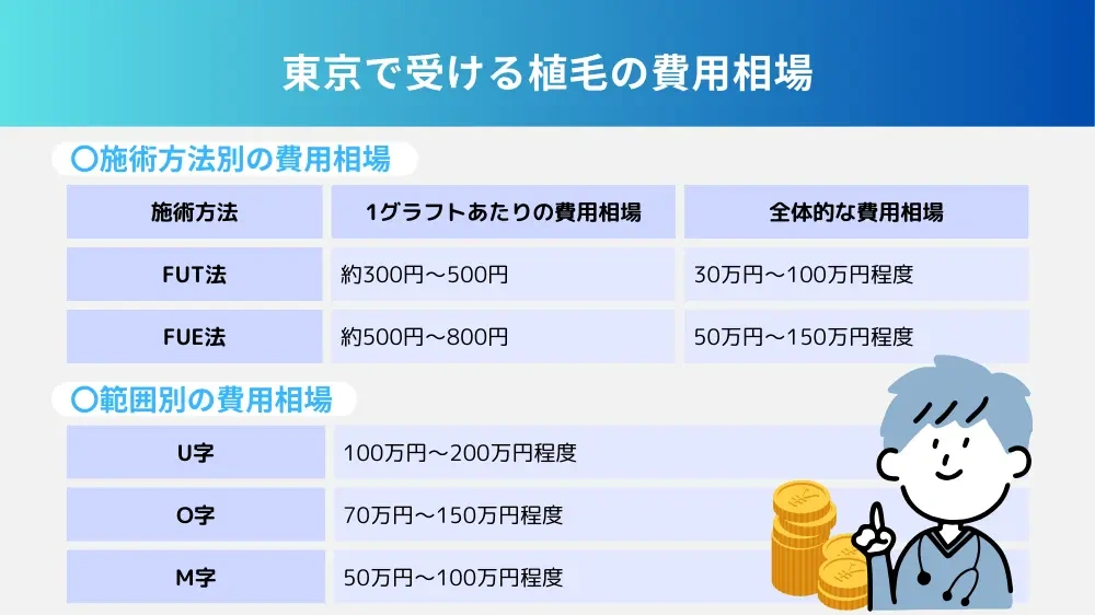 東京での自毛植毛は「自由診療」のため、クリニックによって価格差があります。