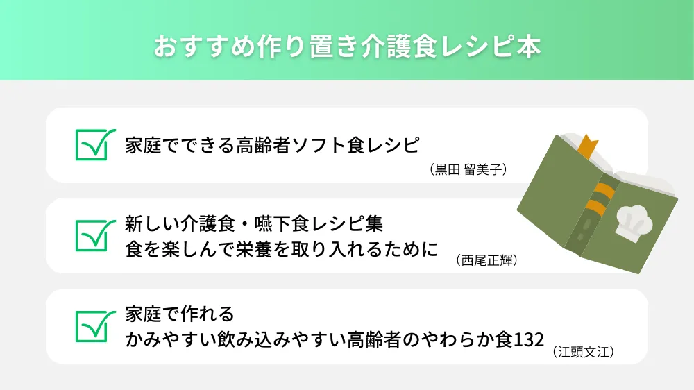 最後に、作り置きのできる介護食が掲載されているレシピ本として、以下の3つをご紹介します。