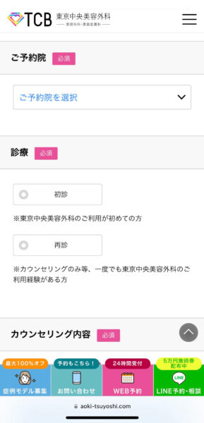 TOPページからは自分が住んでいる地域のクリニックや受けたい