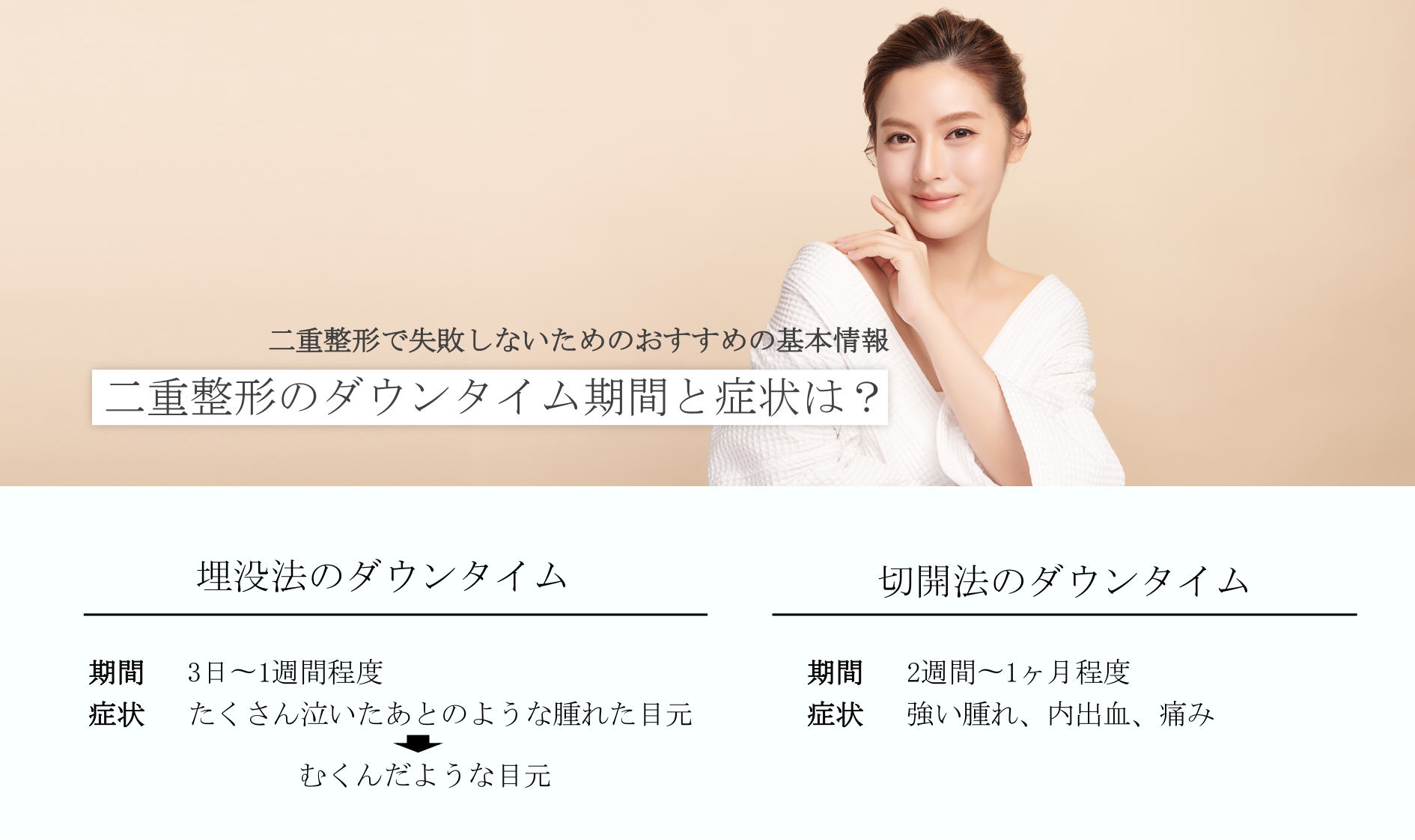 二重整形後のダウンタイムは、施術の種類によって異なりますが、正しいケアと行動で快適に過ごすことができます。