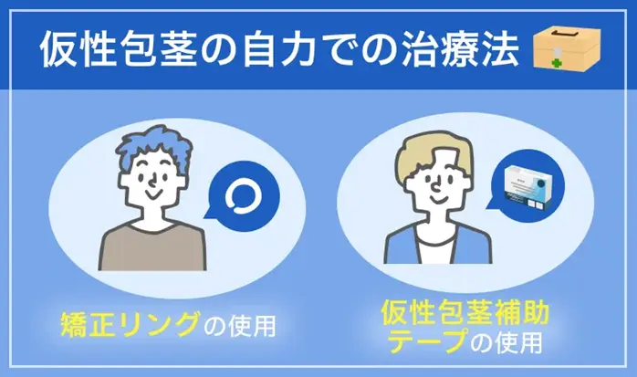 市場には「矯正リング」や「矯正テープ」などのグッズが出回っていますが、これらは一時的に皮を剥いた状態をキープするものであり、余った皮そのものをなくすことはできません。