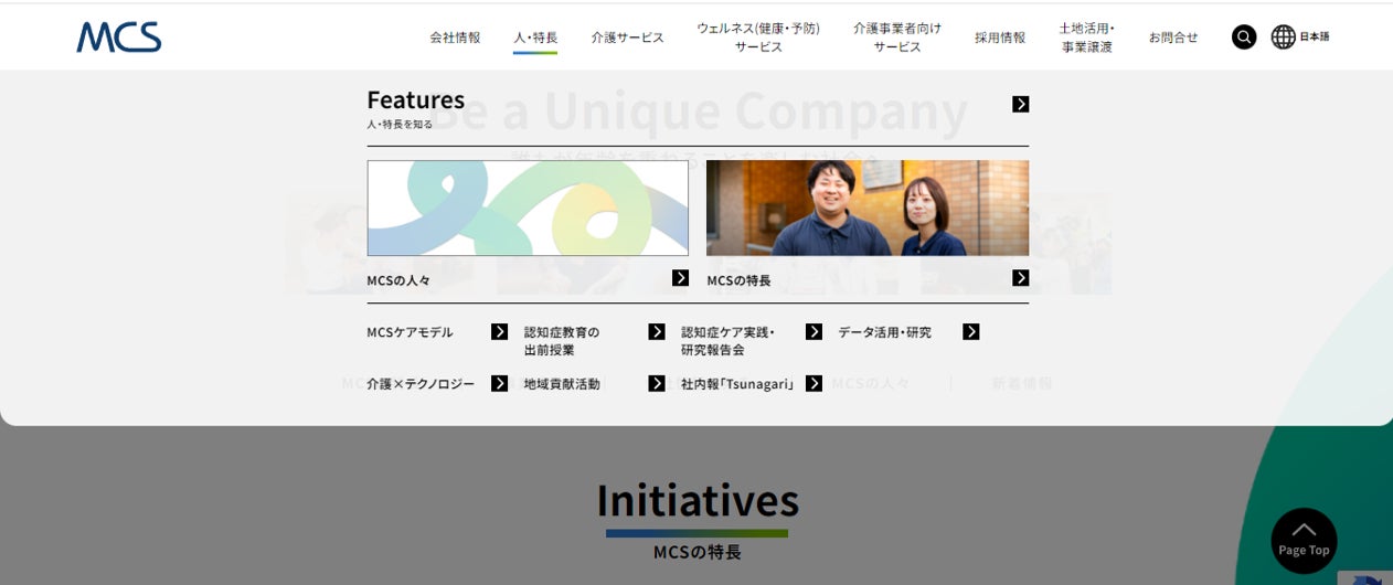 新コーポレートサイトでは、1999年の創業以来取り組む「認知症ケア」をはじめとした当社の特長をわかりやすく伝える内容としています。