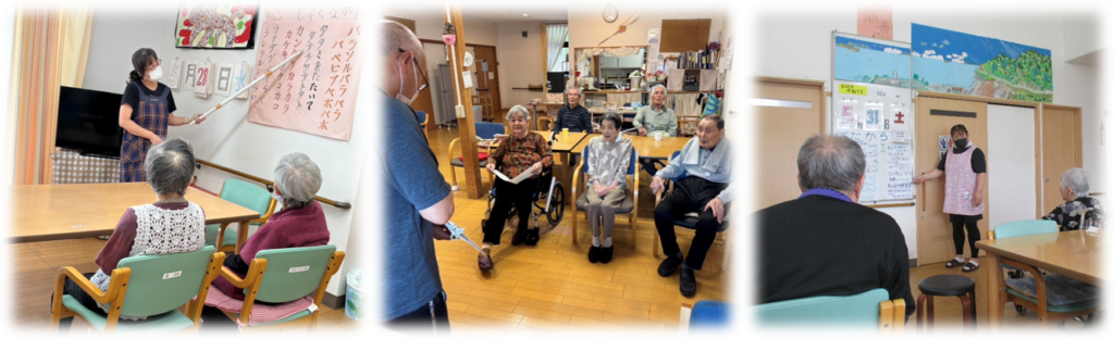 三重エリアの愛の家グループホームでは、日々のケアの中に口腔体操・発声・下肢の運動を組み合わせたオリジナルの健康プログラムを取り入れています。