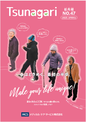 社内報「Tsunagari」は、「全国の事業所」「本社と事業所」「社員とご利用者」の3つの”つながり”を大切にしています。